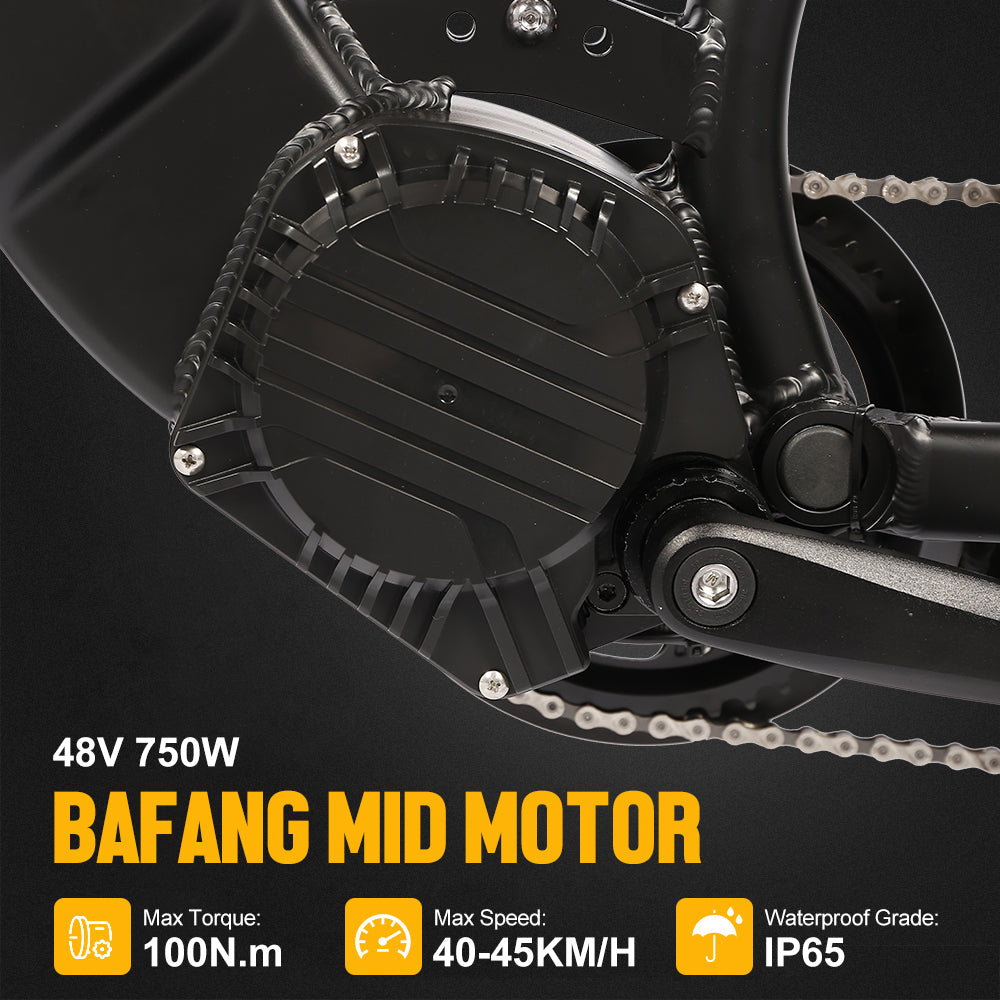 - Motor: BAFANG 750W 48V BBS02B Mid Drive Motor