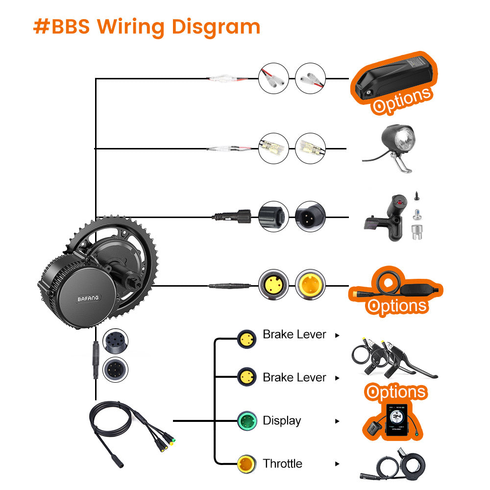 - BBS01B: 36V/250W, 48V/250W, 36V/350W;