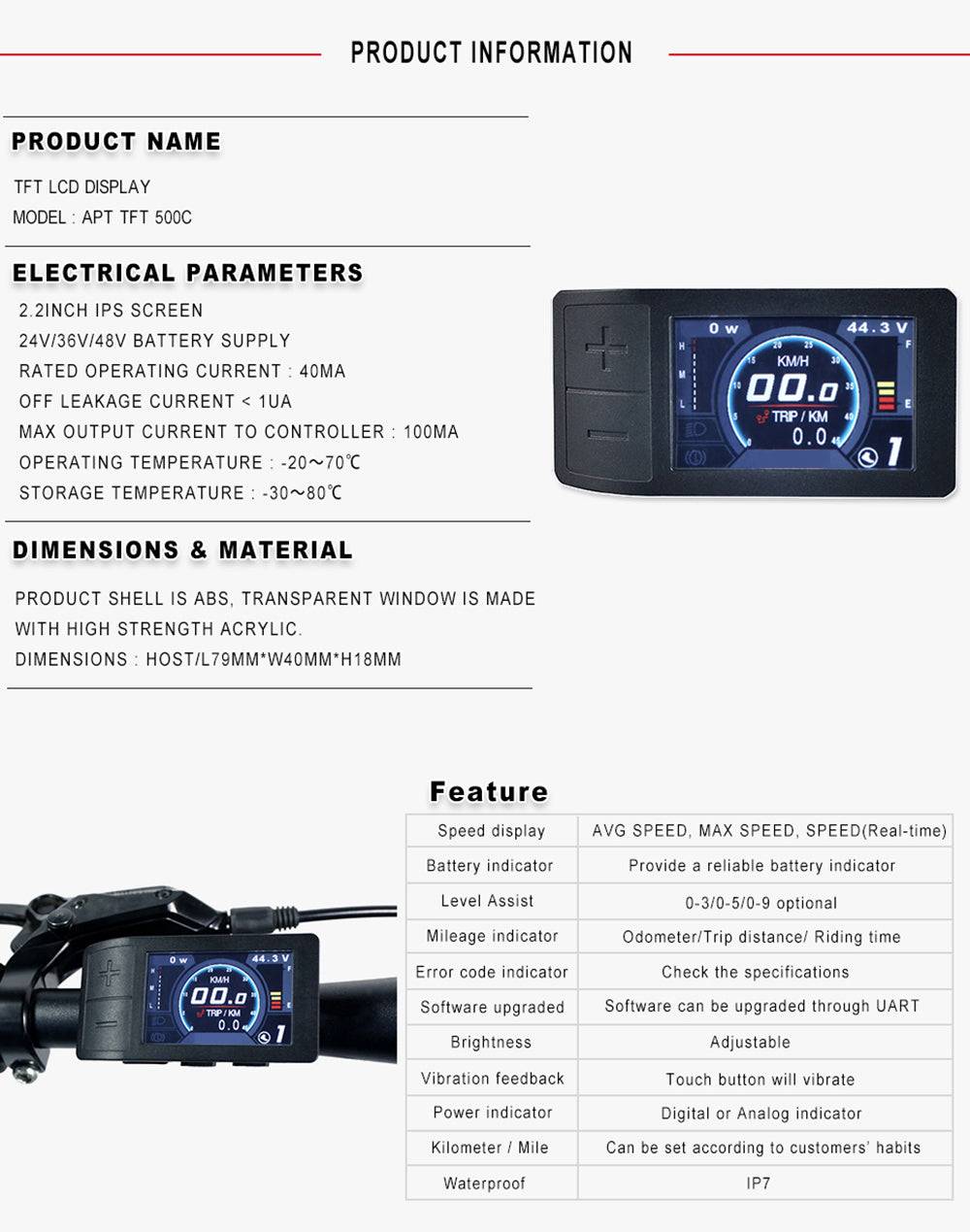 500C Color Mini Display Full Color LCD Screen for UART Bafang eBike Kits